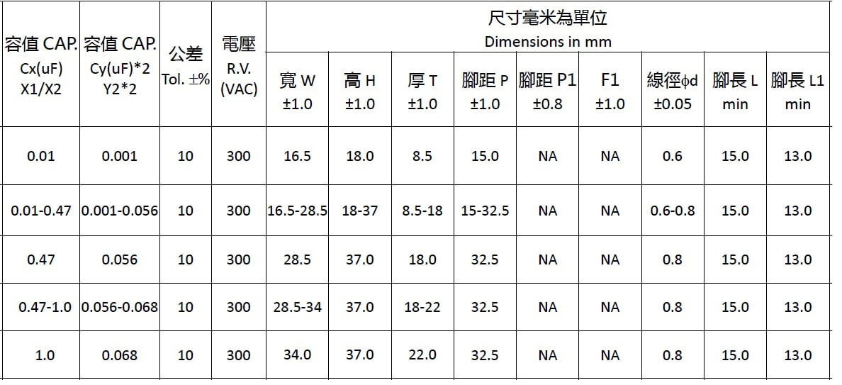Y Capacitor Range : 0.001uF~0.068uF(Y2)